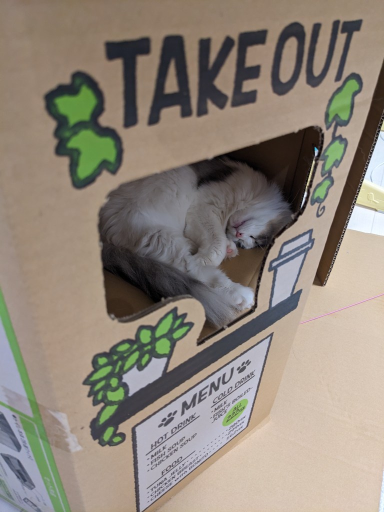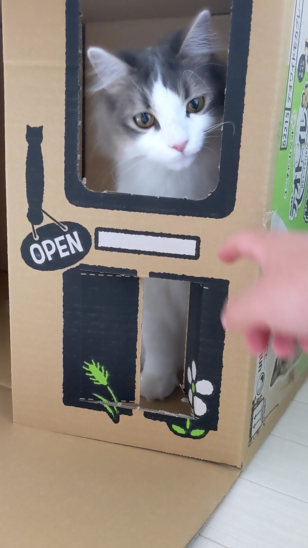 梱包用段ボールがネコの家、キャットハウスになるんです!!!