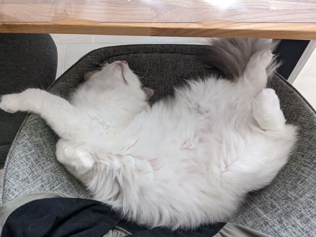 まずはチュール様に手伝ってもらい、キャットタワーに近づいてもらいます。
